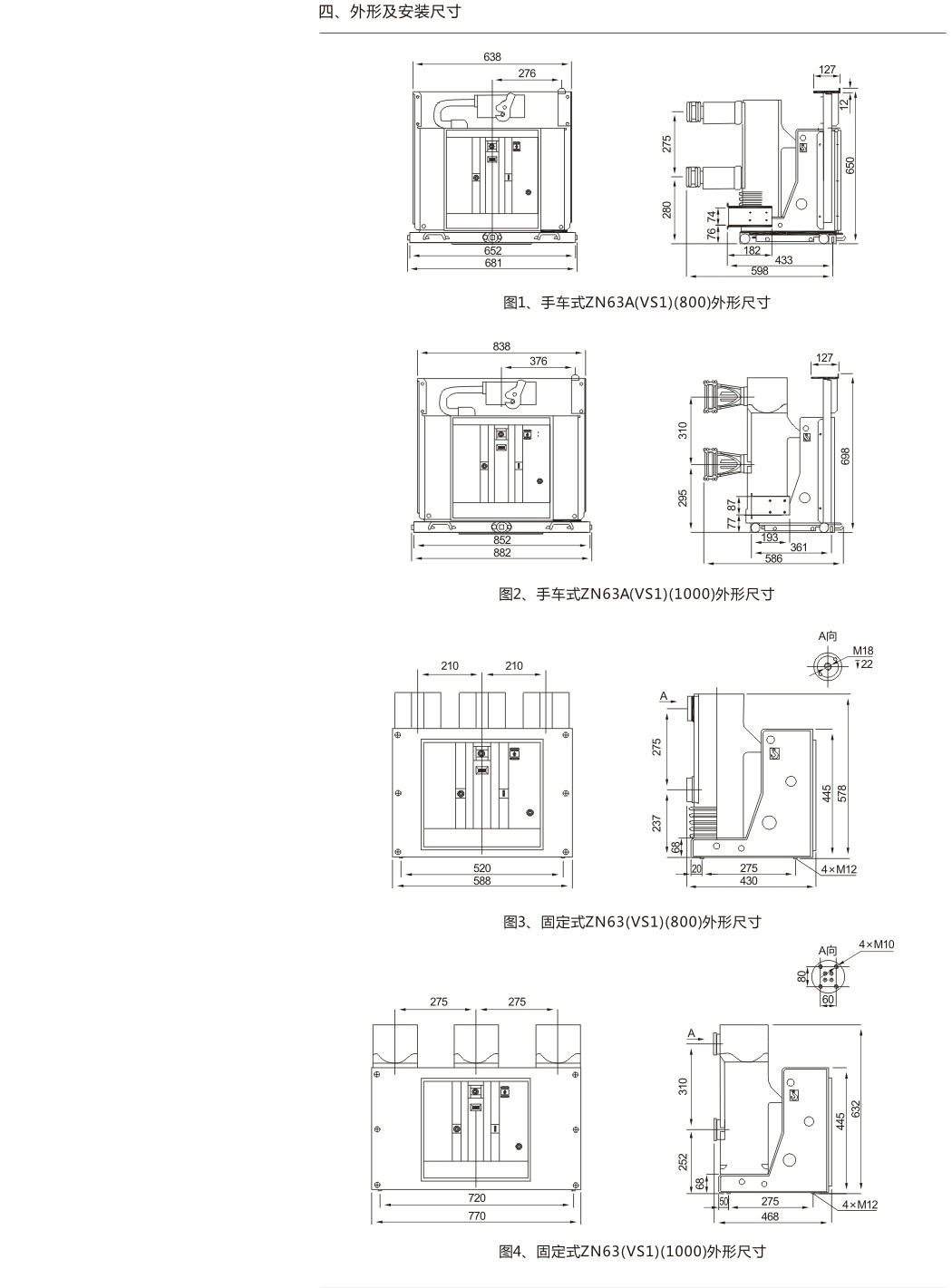 VS1系列按照安裝方式可分為固定式,側(cè)裝式,手車式。操作機構(gòu)有永磁式機構(gòu),彈簧機構(gòu)等,以及普通絕筒,固封式等。