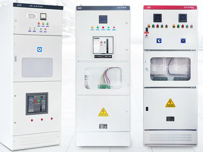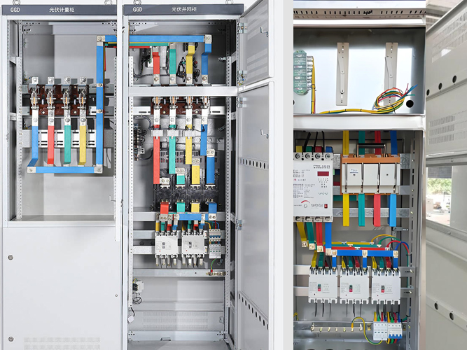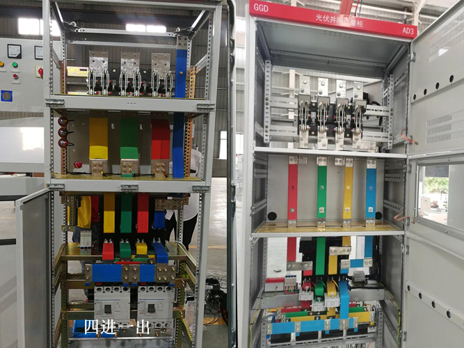 GGD光伏并網(wǎng)柜光伏發(fā)電系統(tǒng)交流并網(wǎng)配電柜適用于太陽能光伏并網(wǎng)發(fā)電系統(tǒng),作為光伏逆變器與升壓變壓器或負載之間的電能轉(zhuǎn)換、分 配與控制之用, GGD 光伏并網(wǎng)柜作為光伏電站的總出口存在于光伏系統(tǒng)中,是連接光伏電站和電網(wǎng)的配電裝置,其主要作用是作為光伏發(fā)電系統(tǒng)與電網(wǎng)的 分界點。對于低壓并網(wǎng)的光伏電站,光伏并網(wǎng)柜中還可以加裝計量、保護等功能器件。